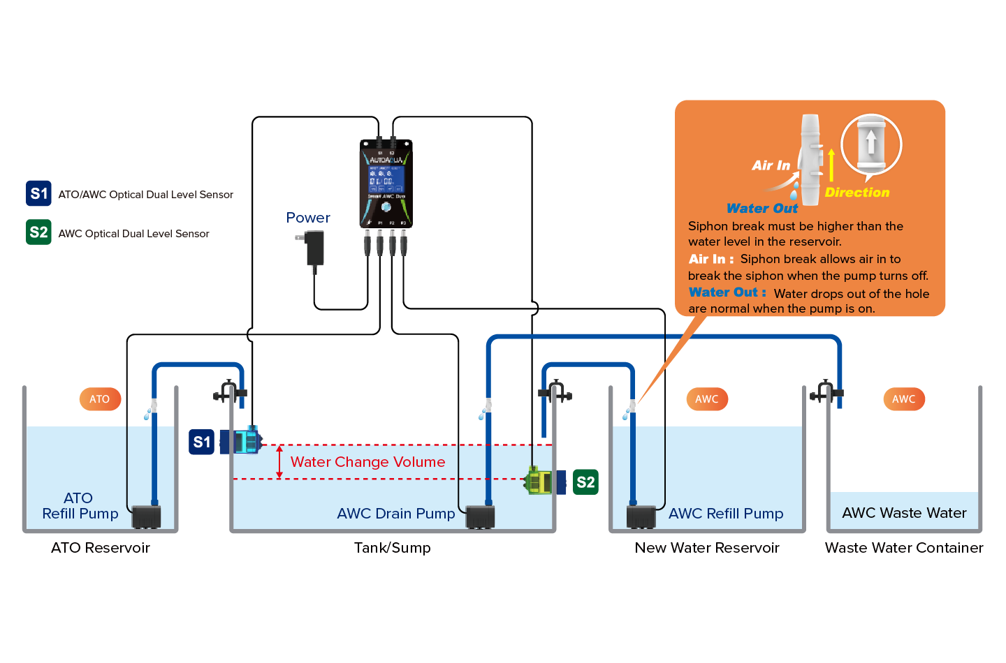 The Smart AWC Duo is the latest version of the fully automated compact water change unit from Autoaqua. It uses two uniquely designed duel level optical sensors that are suitable for both aquariums big and small. Simply mount the two sensors on your tank, adjust their heights with the magnetic mounts and program the desired auto water change settings using the touch screen. Waterchanges can be performed automatically at a desired set frequency or performed manually at the press of a button. This can allow regular small waterchanges to be performed daily or even muliple times a day with little to no effort.